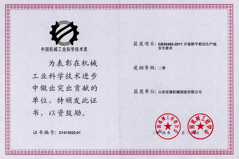 機械(xiè)工業科學技術獎1